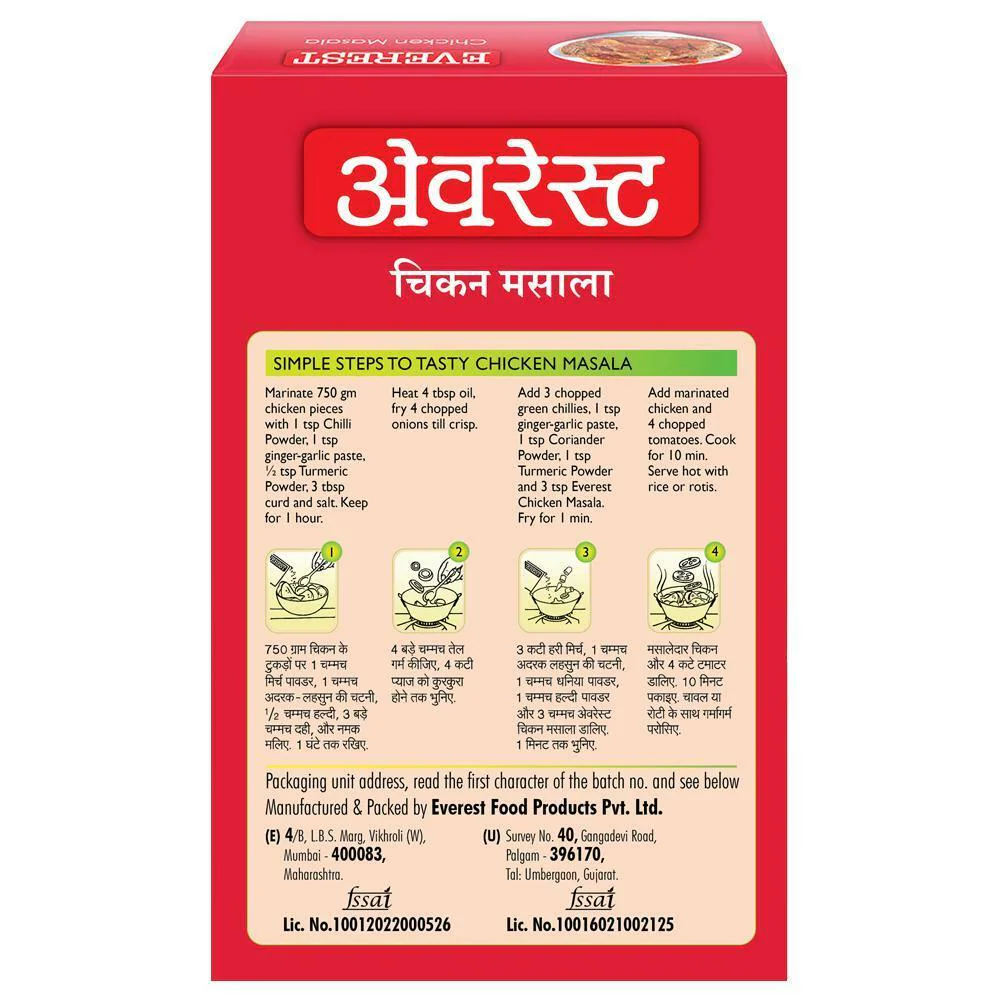 Everest Chicken Masala is finely grounded blend of authentic spices, sourced only from the best of farms.