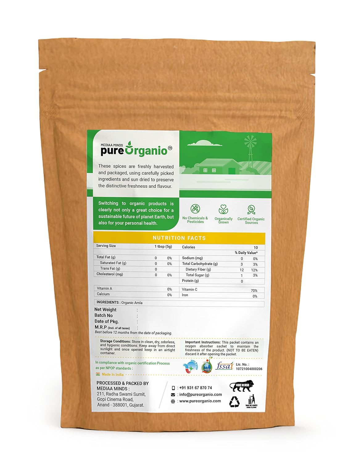 - Organic Amla Powder Edible: Our product is pure and natural amla powder, perfect for consumption. This Indian gooseberry powder is organi amla powder eating certified, offering a unique blend of taste and health benefits.