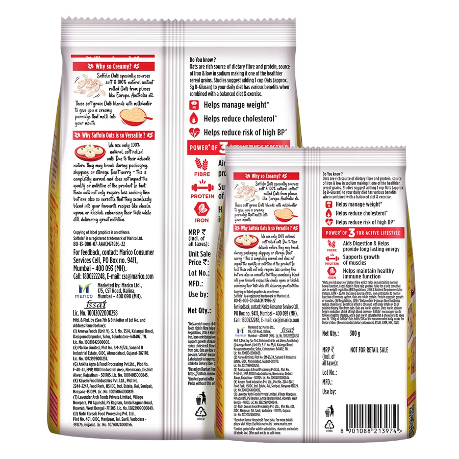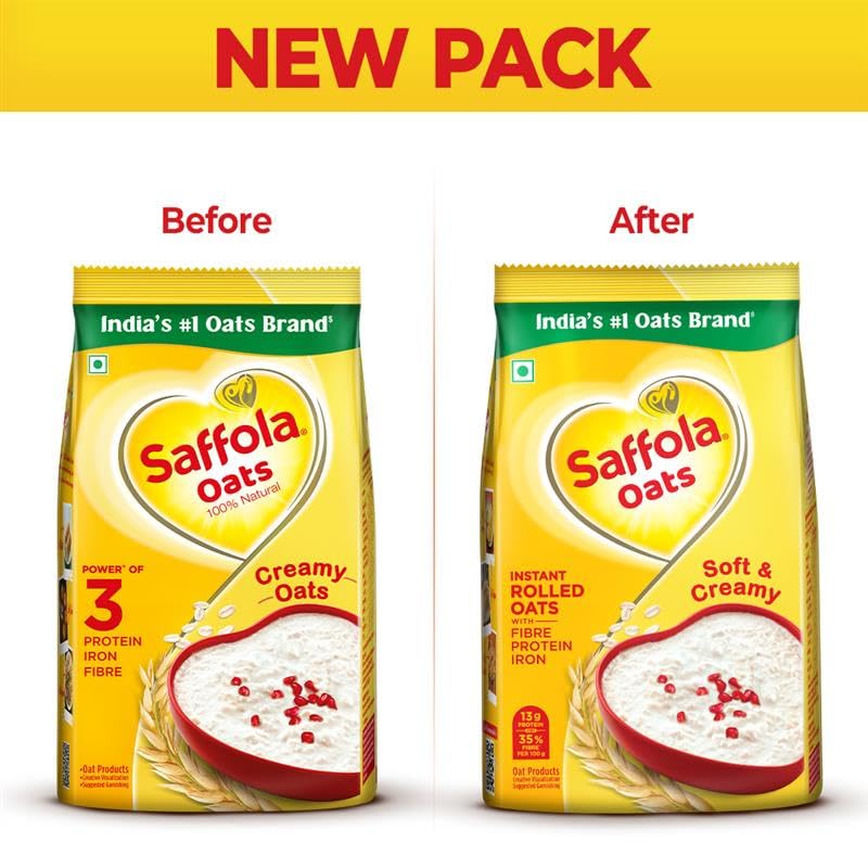 Saffola Oats are instant rolled oats, where each oat grain are specially sources from places like Europe, Australia etc. to provides softness & a creamy texture when cooked.
