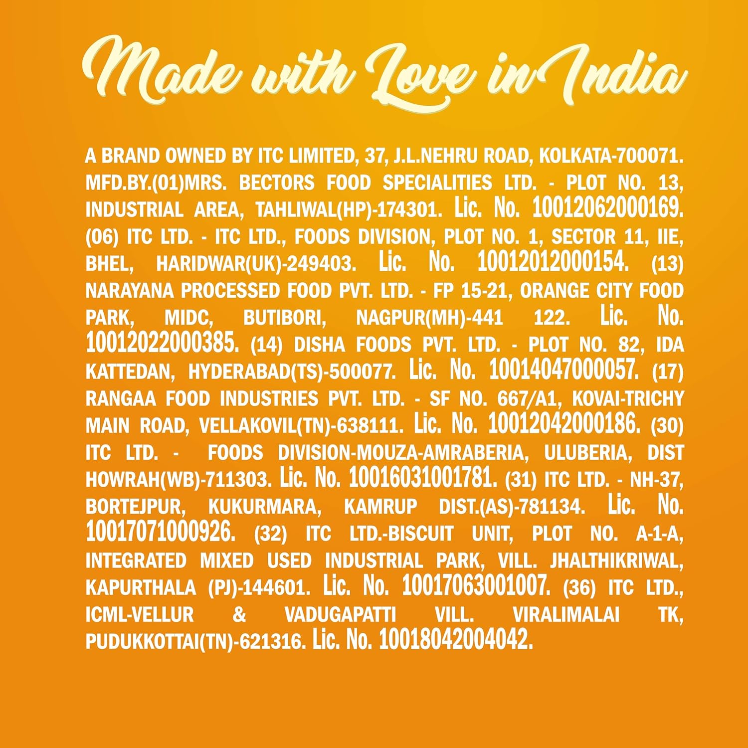 | Ingredients | Refined Wheat Flour (Maida), Sugar, Refined Palm Oil, Invert Syrup, Cashew Bits (0.95%), Raising Agents [Ins 500(Ii), Ins 503(Ii), Ins 450(I)], Iodized Salt, Nature Identical Flavouring Substances, Milk Solids, Emulsifiers [Mono- And Di-Glycerides Of Fatty Acids (From Palm Oil), Lecithin (From Soyabean), Diacetyltartaric And Fatty Acid Esters Of Glycerol (From Sunflower And Palm Oil)], Butter (0.1%), Almond Bits (0.05%), Artificial Flavouring Substances (Butter, Vanilla), Flour Treatment Agent (Ins 223) And Colour (Ins 102). Contains Wheat, Milk, Soy, Nut & Sulphite. |