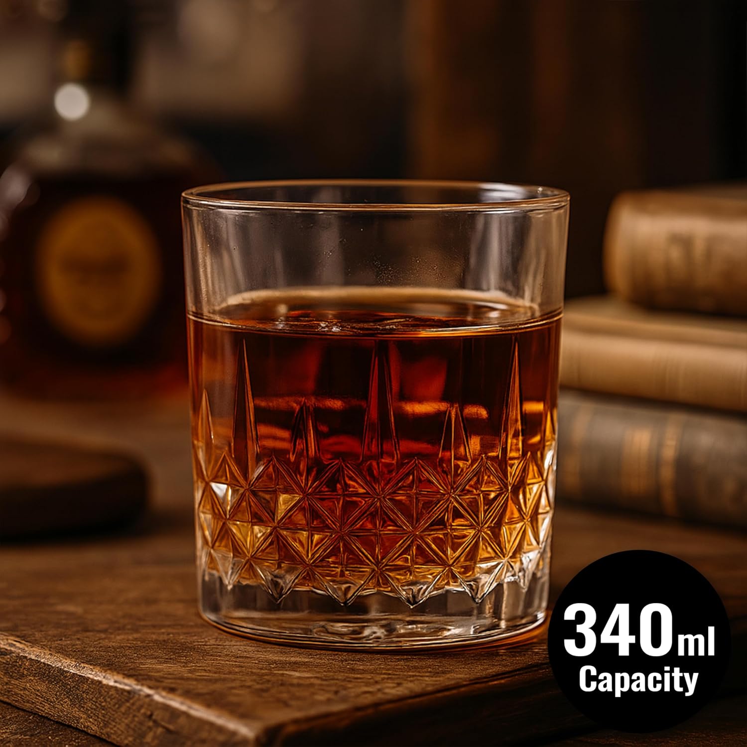 - GENEROUS 340 ML CAPACITY – Spacious 340 ml size allows you to enjoy whiskey, scotch, bourbon, cocktails, or mocktails without constant refills. Perfect for slow sipping and adding ice or mixers, enhancing the aroma and taste of your favorite spirits.