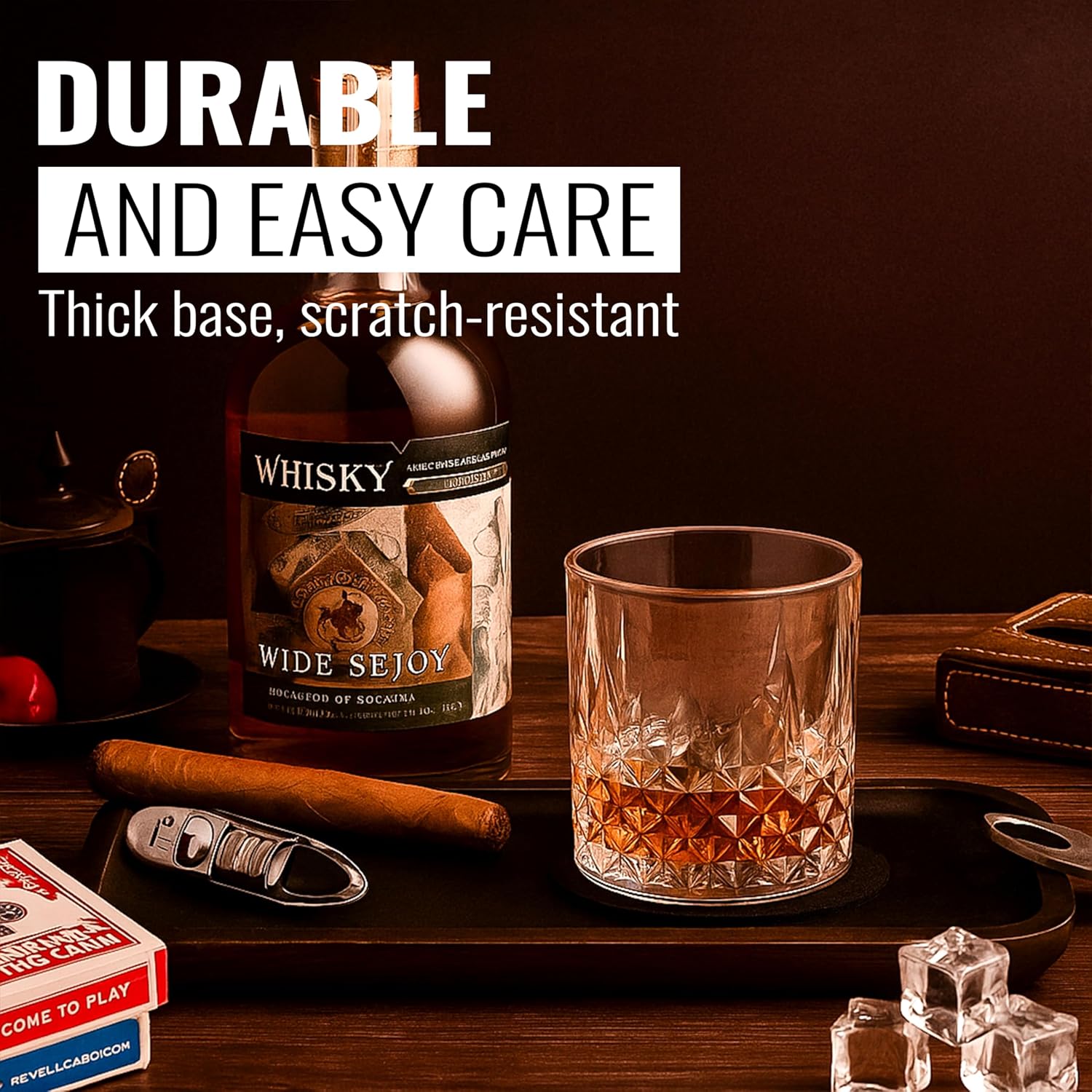 - HEAVY BASE DESIGN FOR STABILITY – Designed with a thick, heavy base for outstanding balance and a comfortable hand feel. Prevents tipping and adds a touch of sophistication and weight, making every sip feel more premium and satisfying. A better replacement for whiskey glass set of 2 and wine glass set of 2