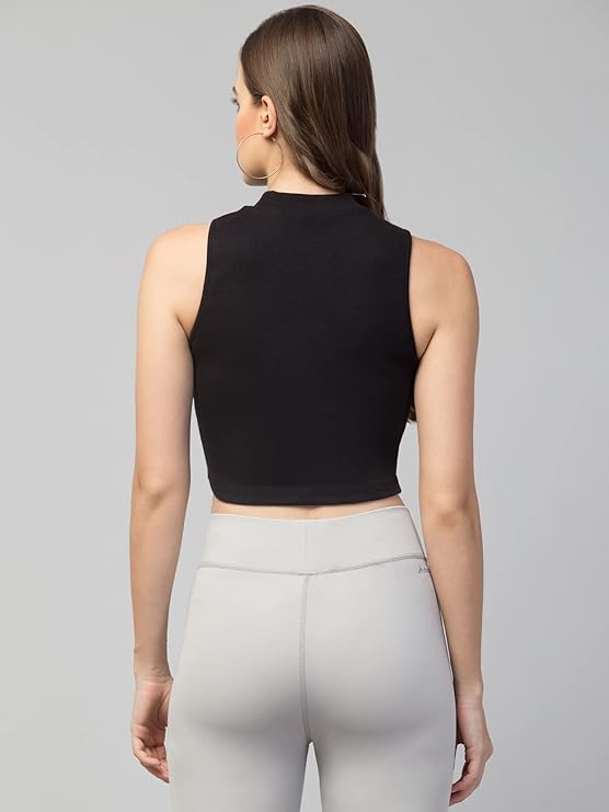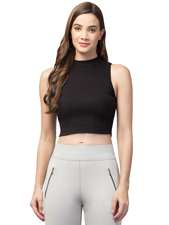 Be the first to review “Women’s Girls Casual High Neck Solid Ribbed Crop Tank Top Black”