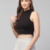 Women’s Girls Casual High Neck Solid Ribbed Crop Tank Top Black