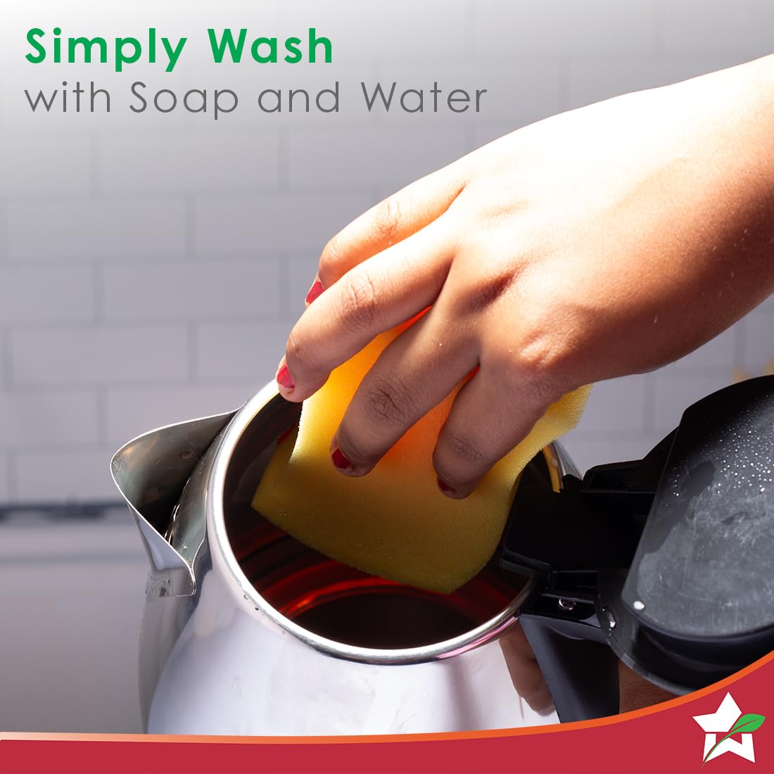 Clean the kettle regularly to maintain hygiene. Keep the base dry. Polish the stainless-steel body occasionally to maintain its shine.Clean the kettle regularly to maintain hygiene. Keep the base dry. Polish the stainless-steel body occasionally to maintain its shine.